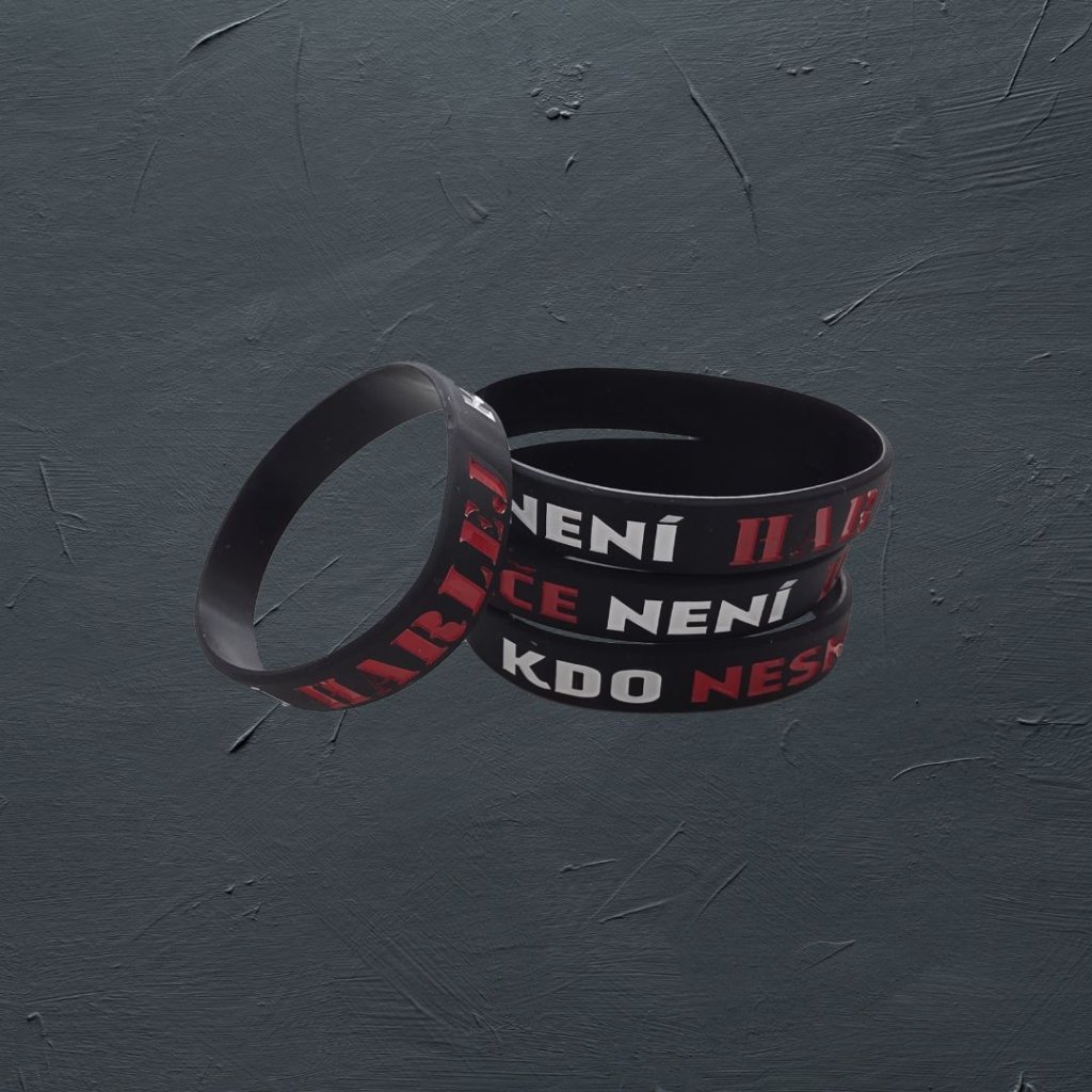 Silikonový náramek s vyraženým logem Harlej a nápisem.